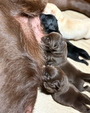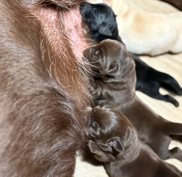 Puppies have arrived! Litter of four was born on February 25, 2026, with a go home date of April 22, 2026. We currently have females in all 3 colors available. Contact us to reserve your puppy today.