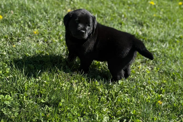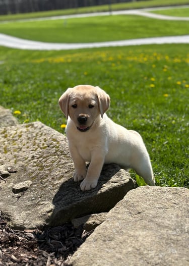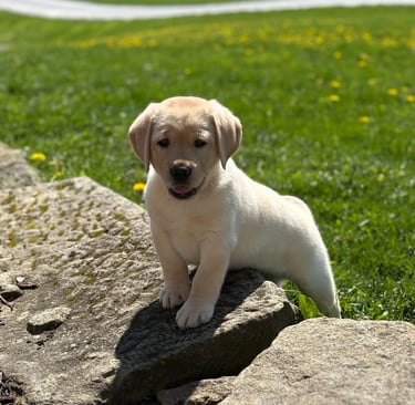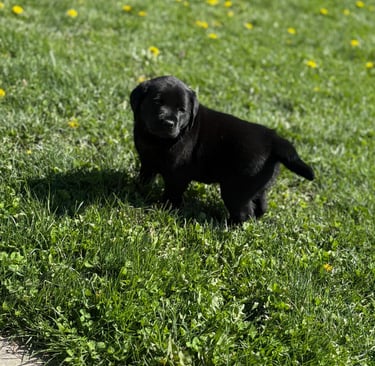 Puppies have arrived! Litter of four was born on February 25, 2026, with a go home date of April 22, 2026. We currently have 2 females available, black and yellow. Contact us to reserve your puppy today.