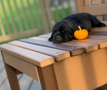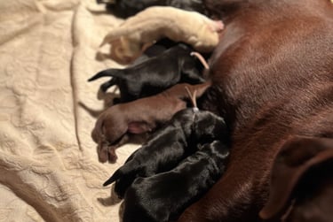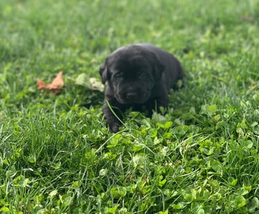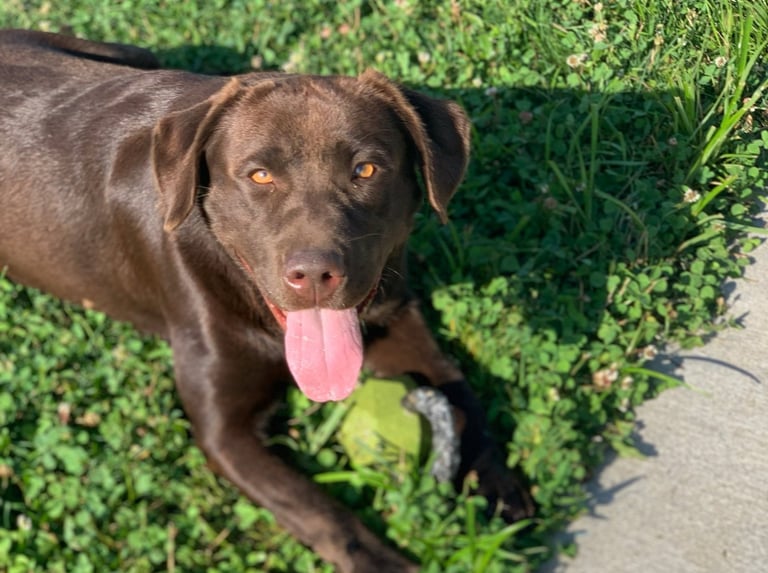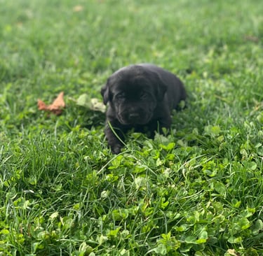 Amber is an active dog who is always ready to play! She is energetic and loves people. Amber's favorite activity is playing fetch and rolling around for tummy rubs! She is Bailey's daughter from one of her earlier litters. She just had her first litter on October 6, 2025. We are starting to notice her puppy's personalities. Their go-home date is in early December, so grab a spot on our waiting list so you can take home one of these cuties.